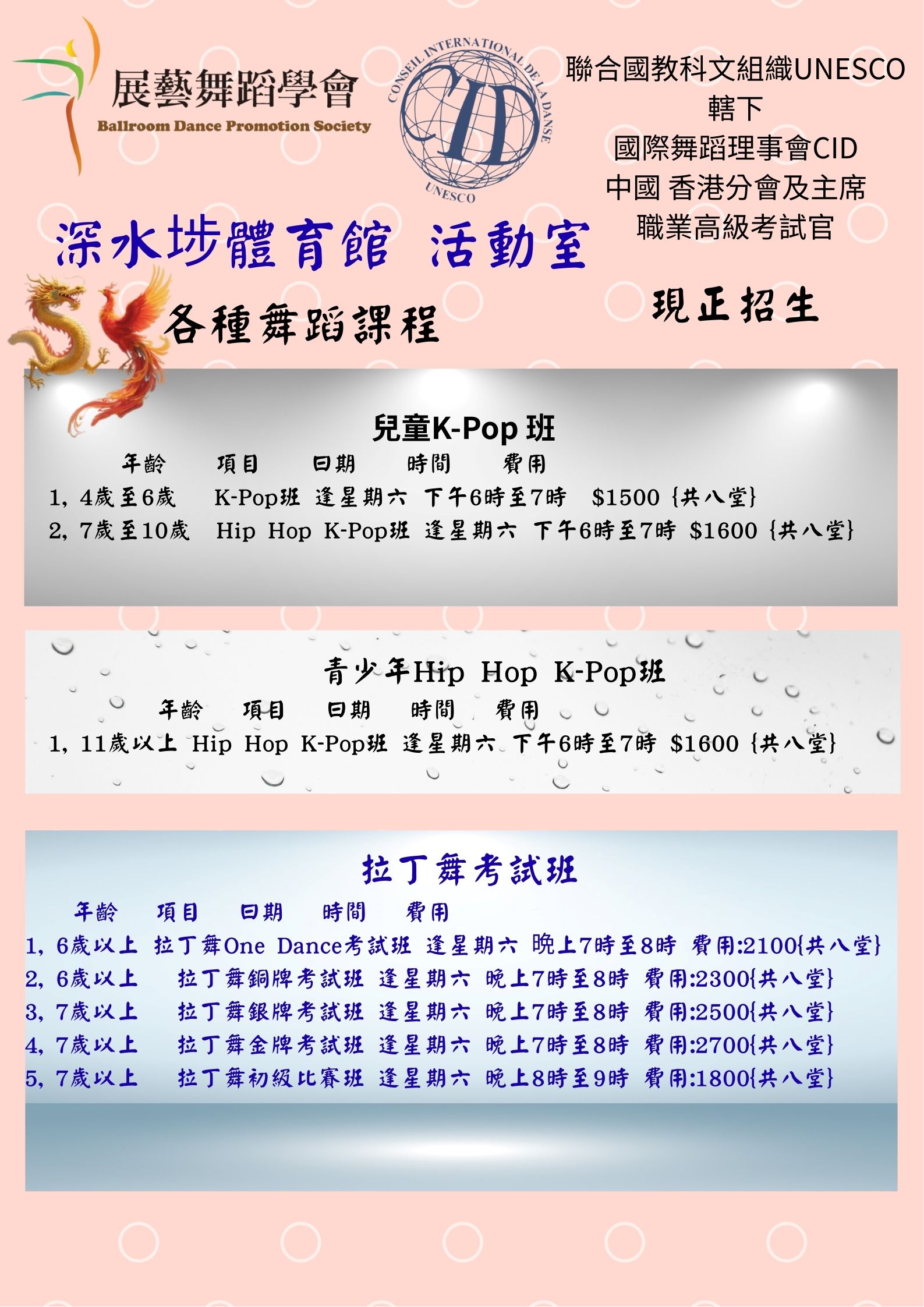 深水埗體育館 活動室 各項舞蹈班 現正招生