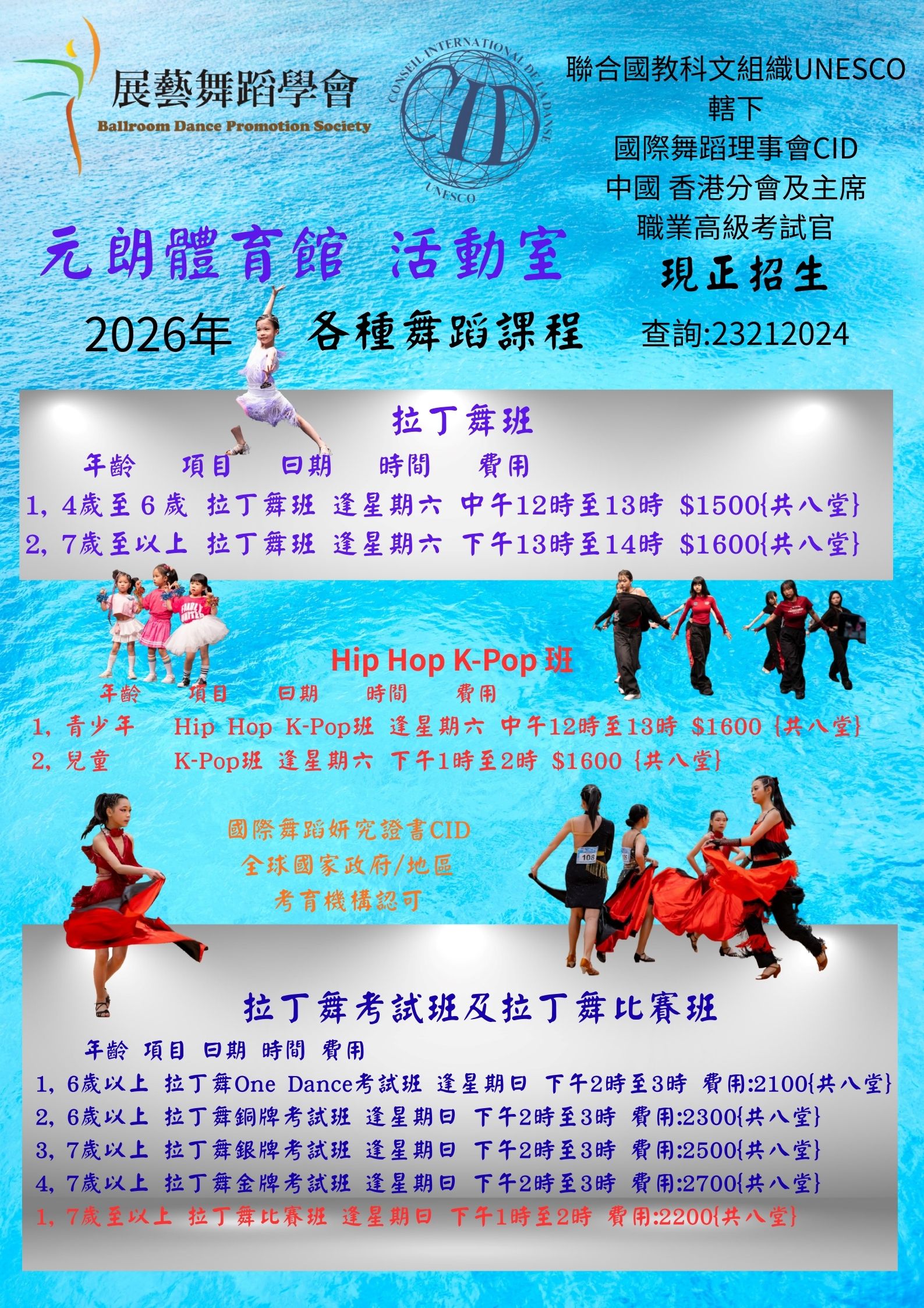 拉丁舞及標準舞 職業及業餘各種舞蹈 CID 國際證書課程,收費表