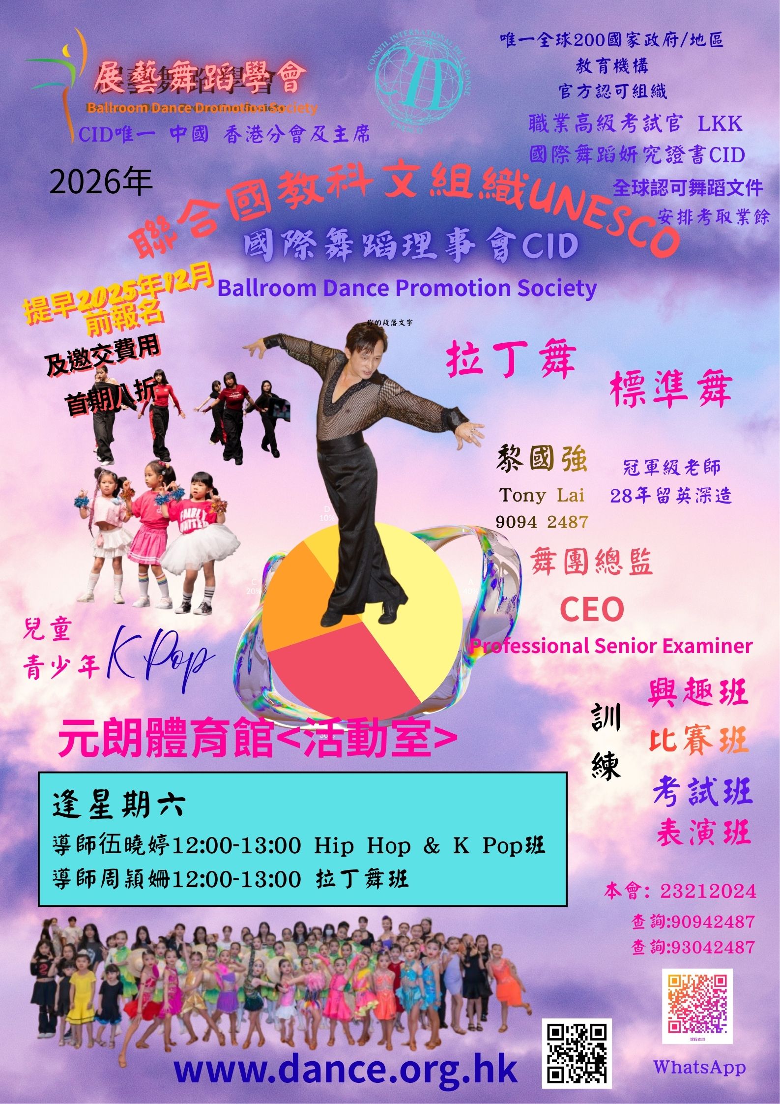 | 元朗骨體育館 活動室 兒童及青少年拉丁舞及K Pop&Hip Hop班 現正招生2026 現正招生 |